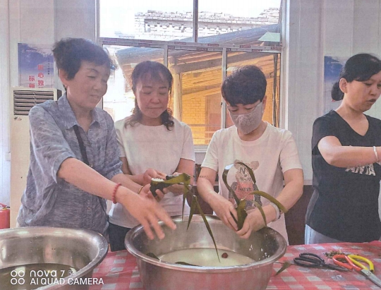 活動現(xiàn)場,還特別邀請技術嫻熟的退休職工石愛愛、茹月連和職工家屬前來助陣,通過現(xiàn)場手把手教學的形式,將傳統(tǒng)手工制作技藝傳承給年輕人;現(xiàn)場學習的年輕人通過疊葉、加料、纏線反復練習制作,眼神中透露著那股不急不躁的慢;歡騰的現(xiàn)場還引來了男職工的助陣;大家在相互學習、相互交流的氣氛中,共話端午習俗,共慶端午佳節(jié)。