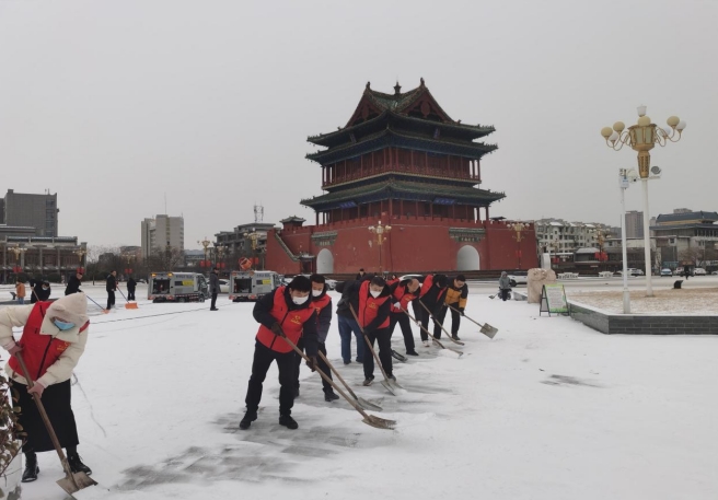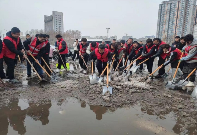 受冷空氣影響,臨汾地區(qū)迎來了2024年春節(jié)假期后的第一場霙(yīng),市氣象局專家解釋到:霙就是天上下冰粒的意思。因冰粒原因,使得道路上積雪變成了一層薄冰,給廣大市民的正常出行帶來了極大影響。2月21日上午,在臨汾市市政公用服務(wù)中心黨委辦的統(tǒng)一安排下,中臨集團(tuán)迅速響應(yīng),積極應(yīng)對,組織黨員20余人,干部職工百余人對鼓樓廣場、解放路(青獅街口——水廠十字路口)進(jìn)行義務(wù)清雪。
