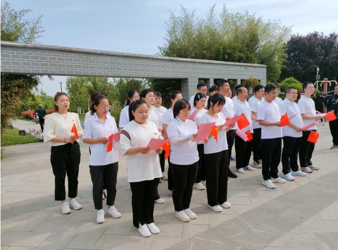 共唱《歌唱祖國》;第二項由中心黨委機(jī)關(guān)第三黨支部書記閻素琴帶領(lǐng)大家重溫入黨誓詞;第三項由各基層黨組織表演節(jié)目,我支部合唱的《強(qiáng)軍戰(zhàn)歌》,唱出了我們黨和祖國領(lǐng)贊新時代黨員的新風(fēng)貌;第四項中心黨委領(lǐng)導(dǎo)班子成員為大家發(fā)放“文明出行”“健康生活”倡議書;最后一項中心黨委書記、主任郭鋒作重要講話,宣布健步走活動開始。