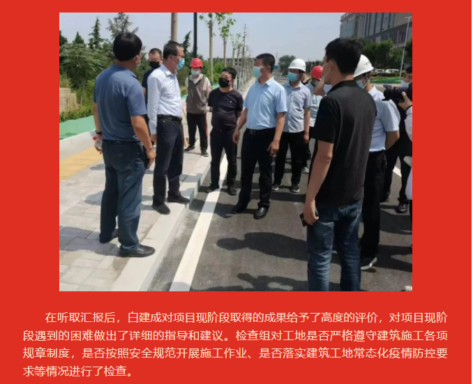臨汾市經(jīng)濟開發(fā)區(qū)黨工委書記、管委會主任白建成一行到濱河?xùn)|路輔道(河汾四路-向陽西路段)道路工程開展安 全生產(chǎn)和疫情防控檢查
